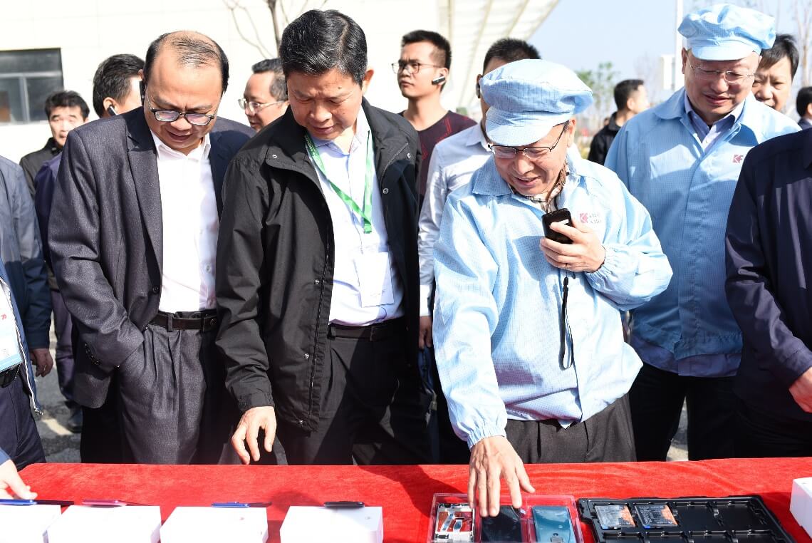 在深科技桂林產(chǎn)品展區(qū),陳朱江向考察團(tuán)簡(jiǎn)要介紹了深科技生產(chǎn)制造的硬盤(pán)、磁頭、智能電表等各種產(chǎn)品,并詳細(xì)講解智能手機(jī)產(chǎn)品的生產(chǎn)工藝流程。隨后,考察團(tuán)到一期生產(chǎn)車間參觀,實(shí)地了解SMT生產(chǎn)線的工藝流程、產(chǎn)品生產(chǎn)運(yùn)輸裝配流程及人員管理調(diào)度等情況。考察團(tuán)對(duì)深科技的產(chǎn)品多樣性、先進(jìn)技術(shù)及桂林公司發(fā)展前景表示贊許。